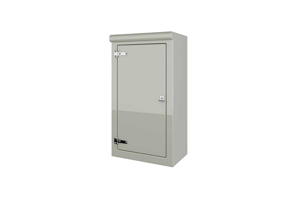 Our VR3 GRP Cabinet is available in Green (BS 14-C-39) and Grey (BS 10-A-05) as standard and is finished internally with a fire-retardant resin, it has a Single Skin Construction and comes complete with stainless steel hinges, security fixings, a cylinder nightlatch lock as well as a surface treated ply backboard, it has a closed base and is suitable for both floor or wall mounting. Delivery is normally made by National Carrier.
